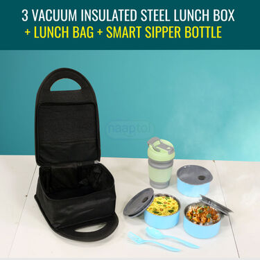 THE PERFECT MEAL COMPANION - 3 Vacuum Insulated Steel lunch Box with Insulated Sipper Bottle (3ISLBF)
